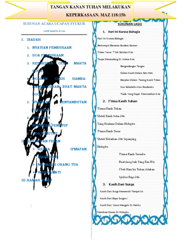 Ala ni hupuji Ho tung marribu hali do. Segala puji bagi Allah Rabb pemberi segala nikmat. Susunan acara doa syukur dan pembubaran teks pembukaan perayaan natal syukuran rumah baru copy of safari ramadhan.