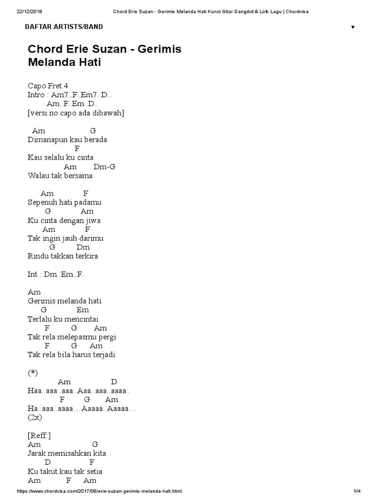 Gerimis melanda hati lagu ini di populerkan oleh Erie Suzan. Gerimis Melanda Hati chords by Erie Suzan. Chord Erie Suzan - Gerimis Melanda Hati Capo Fret 4 Intro.