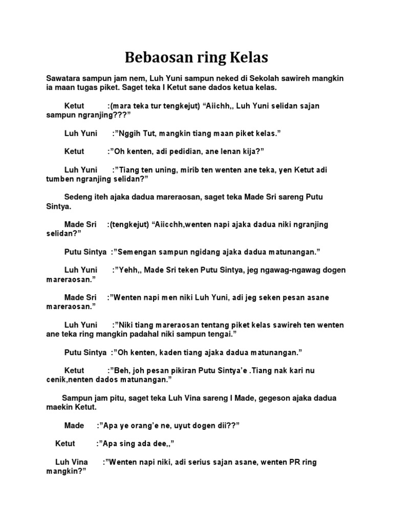 Tolong Buatin Pecakapan Bahasa Bali 6 Orang Brainly Co Id
