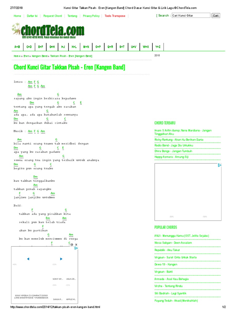 Kunci Gitar Takkan Pisah Eren Kangen Band Chord Dasar Kunci Gitar Lirik Lagu C Pdf