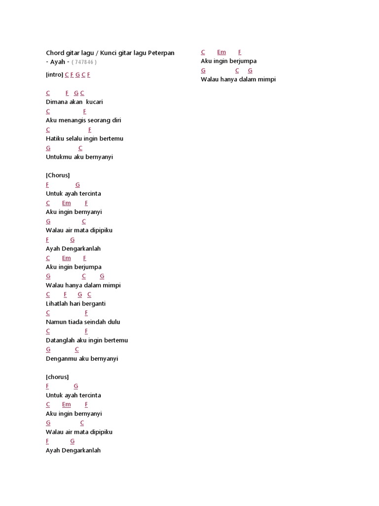 Am F Am F - G Am Sayang aku ingin G Berbicara kepadamu tentang Dm G C E Apa yang tengah aku rasakan Am Ada apa ada apa G Katakanlah semuanya Dm G C Ku kan dengarkan duhai cintaku. Semua orang tua ingin. Am F G Am F G Am Am G sayang aku ingin berbicara kepadamu Dm G C E tentang apa yang tengah aku rasakan Am G ada apa ada apa katakanlah semuanya Dm G C ku kan dengarkan duhai cintaku Musik.